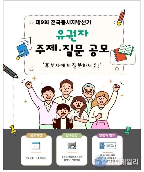 리치데일리 김상현 기자 | 중앙선거방송토론위원회는 제9회 전국동시지방선거 후보자토론회에서 토론주제와 질문사항 선정에 활용하기 위해 4월 6일부터 ‘유권자 주제·질문 공모’를 실시한다고 밝혔다.