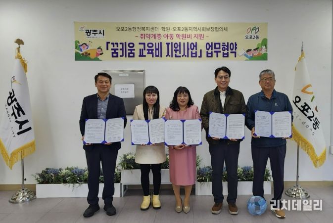오포2동 지역사회보장협의체는 지난달 31일 취약계층 아동의 교육 격차 해소를 위해 지역 내 학원과 ‘꿈 키움 교육지원 사업’ 업무 협약식을 맺었다.