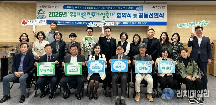 리치데일리 김상현 기자 | 경상국립대학교 지속가능발전센터(센터장 김영철 회계세무학부 교수)와 진주시평거종합사회복지관(관장 김순자)은 3월 31일 오후 2시 진주시평거종합사회복지관 분관 3층 강당에서 자원순환 프로그램 개발과 협력 강화를 위한 업무협약을 체결했다.