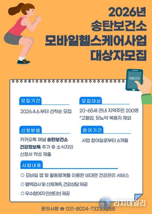 리치데일리 김상현 기자 | 평택시는 개인 맞춤형 건강관리 사업인 녪년 보건소 모바일 헬스케어 사업’대상자 모집을 오는 6일부터 시작한다고 밝혔다.