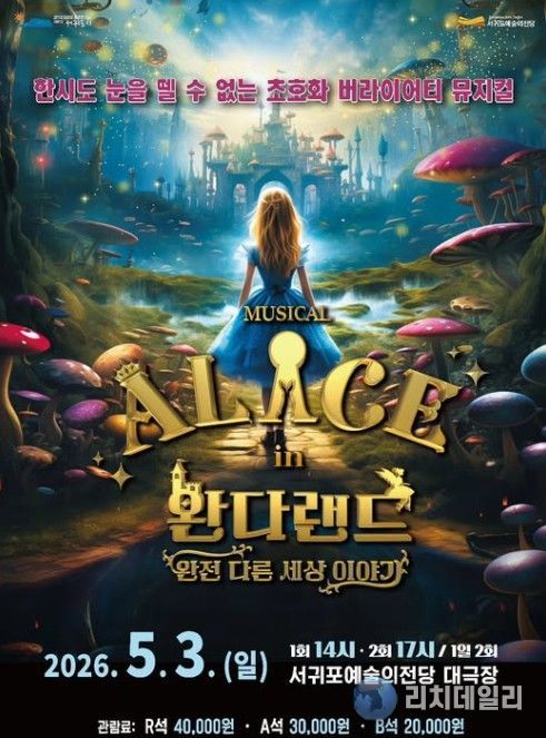 리치데일리 김상현 기자 | 서귀포예술의전당은 5월 가정의 달을 맞아 뮤지컬 '이상한 나라의 앨리스: 완다랜드'를 5월 3일 오후 2시와 5시, 총 2회에 걸쳐 서귀포예술의전당 대극장에서 선보인다.