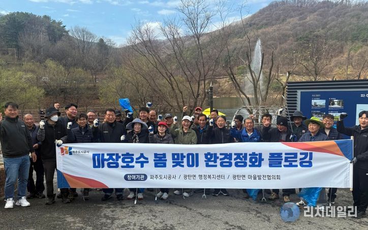 리치데일리 김상현 기자 | 파주도시공사는 지난 31일 파주시 광탄면 행정복지센터 및 마을발전협의회와 함께 마장호수 봄맞이 환경정화 플로깅에 나섰다.