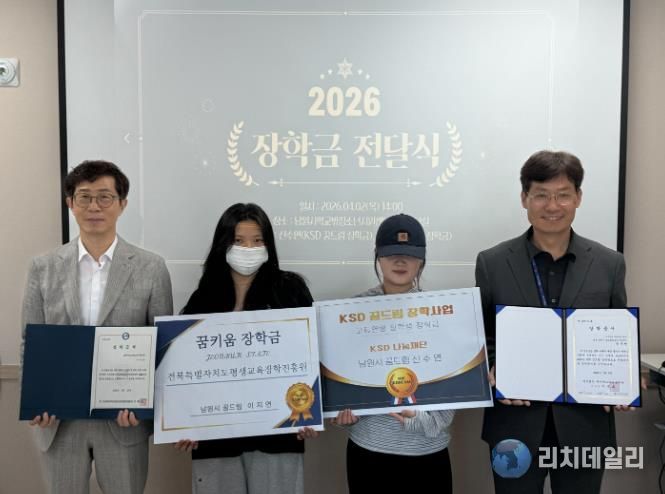 리치데일리 김상현 기자 | 남원시학교밖청소년지원센터는 지난 2일 전북특별자치도평생교육진흥원과 KSD나눔재단이 추진하는 장학사업을 통해 소속 학교 밖 청소년이 장학생으로 선발됐다고 밝혔다.