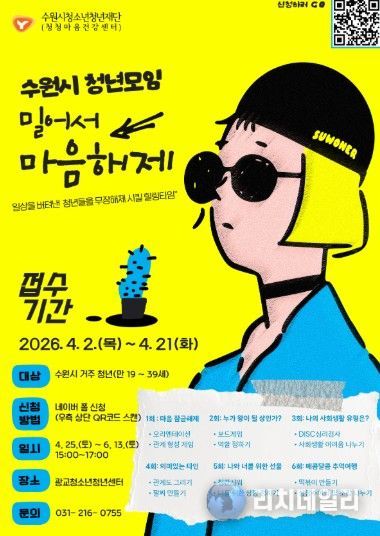 신청 기간은 오는 4월 2일부터 21일까지이며, 수원시에 거주하거나 활동하는 청년이라면 누구나 신청할 수 있다. 자세한 사항은 수원시청소년청년재단 홈페이지 또는 수원청년포털을 통해 확인할 수 있다.