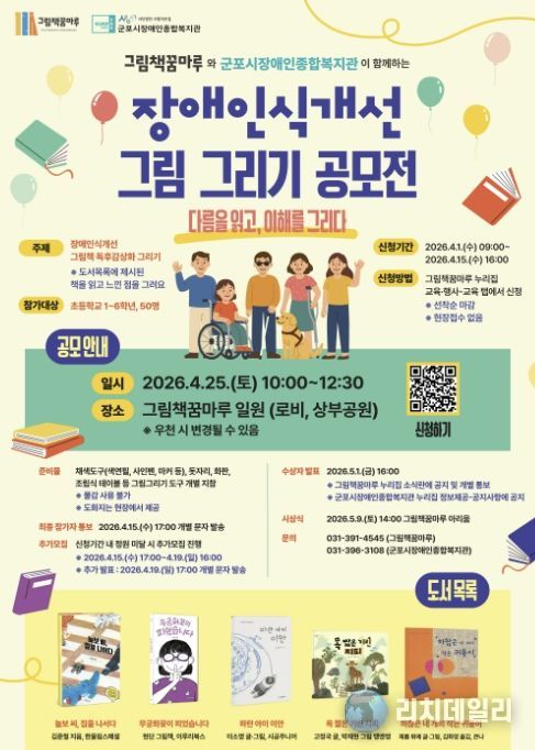 리치데일리 김상현 기자 | 군포 그림책꿈마루와 군포시장애인종합복지관이 공동 주관하는 장애인식 개선 그림그리기 공모전이 오는 4월 25일(토) 10시부터 그림책꿈마루 로비 및 상부공원에서 진행될 예정이다.