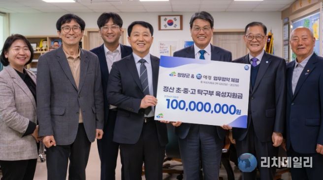 군은 지난 1일 애경산업(주)이 정산 초·중·고등학교 탁구부 육성을 위한 장학금 1억 원을 기탁했다고 밝혔다.