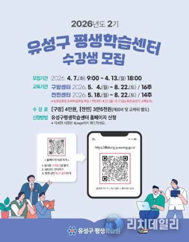 리치데일리 김상현 기자 | 대전 유성구는 오는 7일부터 13일까지 구암평생학습센터와 전민평생학습센터에서 ‘2026년 2기 평생학습센터’ 수강생을 모집한다.