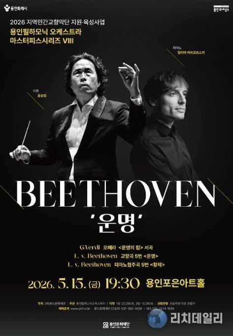 리치데일리 김상현 기자 | 용인문화재단은 오는 5월 15일 오후 7시 30분 용인포은아트홀에서 ‘2026년 지역민간교향악단 지원·육성사업’의 첫 공연으로 용인필하모닉오케스트라의 기획공연 '마스터피스 시리즈 Ⅷ - 베토벤 ‘운명’'을 선보인다.
