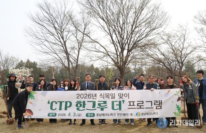리치데일리 김상현 기자 | (재)충남테크노파크는 제81회 식목일을 기념해 임직원들이 직접 참여하는 ‘CTP 한 그루 더’ 나무 심기 프로그램을 3일 진행했다고 밝혔다.