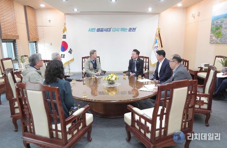 육동한 춘천시장은 3일 시청 접견실에서 ‘춘천 시온 숲속의 아침 뷰’ 입주예정자 대표회의와 면담을 갖고 장기간 공사 중단으로 어려움을 겪고 있는 시민들을 격려하고 현장 의견을 청취했다. 아파트 사업 중단 장기화로 불편과 피해가 이어지고 있는 상황에서 입주예정자들의 목소리를 직접 듣고 피해 최소화를 위한 대응 의지를 나타냈다.