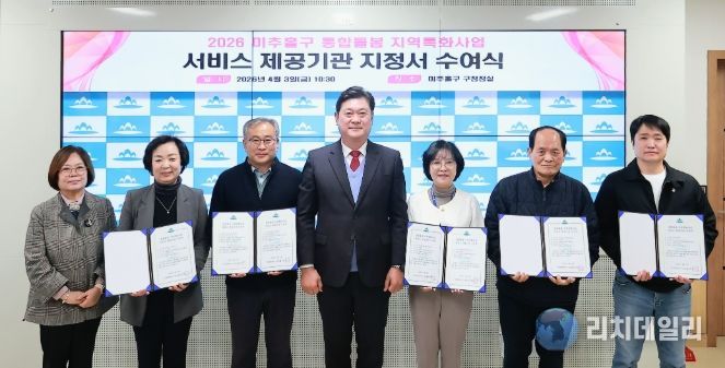 리치데일리 김상현 기자 | 인천 미추홀구는 3일 구청장실에서 ‘2026년 미추홀구 통합 돌봄 지역특화 사업을 수행할 서비스 제공기관 5곳에 지정서를 수여했다고 밝혔다.