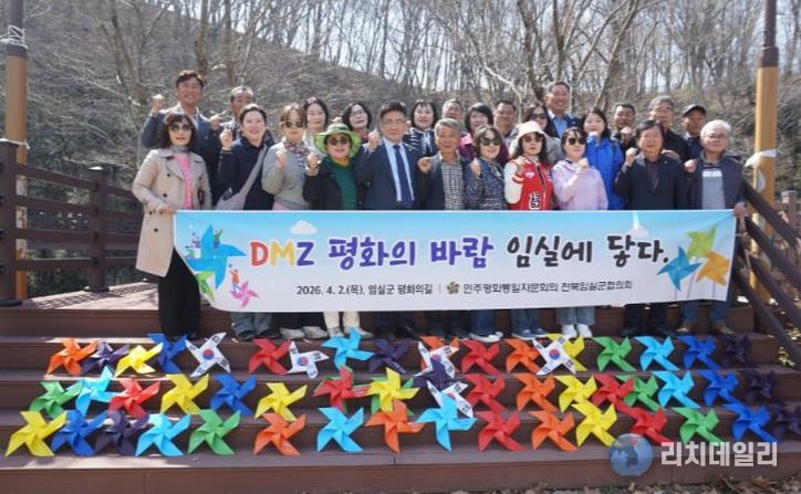 리치데일리 김상현 기자 | 민주평화통일자문회의 임실군협의회는 지난 2일, 임실군 사선대 국민관광지에서 자문위원 30여 명이 참석한 가운데 ‘DMZ에서 고이 담아 온 평화의 바람(HOPE)’을 상징하는 바람개비를 설치하여 ‘함께걷는 평화의 바람길’을 조성했다.