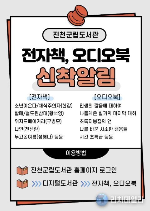 리치데일리 김상현 기자 | 충북 진천군립도서관은 군민의 독서 접근성을 높이고 생활 속 독서 문화 확산을 위해 전자책과 오디오북 신착 도서를 대폭 확충했다고 밝혔다.