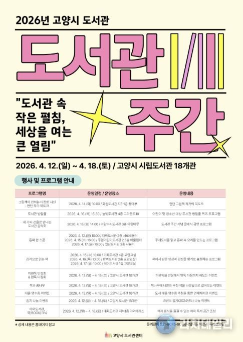 이동환 고양특례시장은 “도서관은 시민 삶의 질을 높이는 핵심 기반”이라며 “도서관 주간을 통해 시민들이 바쁜 일상 속 잠시나마 휴식하며 책 읽는 즐거움을 찾는 시간이 되길 바란다”고 말했다.
