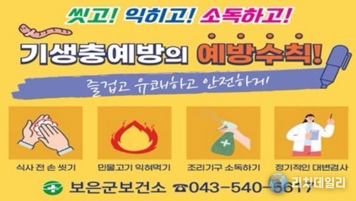 리치데일리 김상현 기자 | 충북 보은군보건소는 금강 유역 인근 거주자 및 검사 희망 군민 300명을 대상으로 4월 30일까지 장내 기생충 12종 무료 검사를 실시한다고 밝혔다.