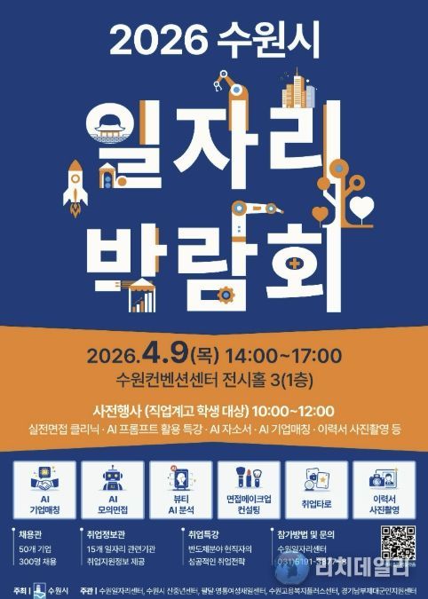 리치데일리 김상현 기자 | 수원특례시는 9일 오후 2시부터 5시까지 수원컨벤션센터 전시홀에서 ‘2026 수원시 일자리박람회’를 개최한다.