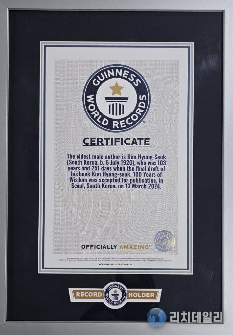 리치데일리 김상현 기자 | 양구군 인문학박물관 인문대학 명예교수인 김형석 연세대학교 명예교수가 ‘세계 최고령 저자(Oldest Author)’로 공인된 기네스 세계기록 인증서를 양구군에 기증했다.