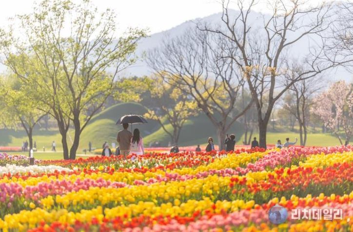 국가정원 전역에 150만 송이의 튤립이 일제히 피어나며 장관을 이루고 있다.