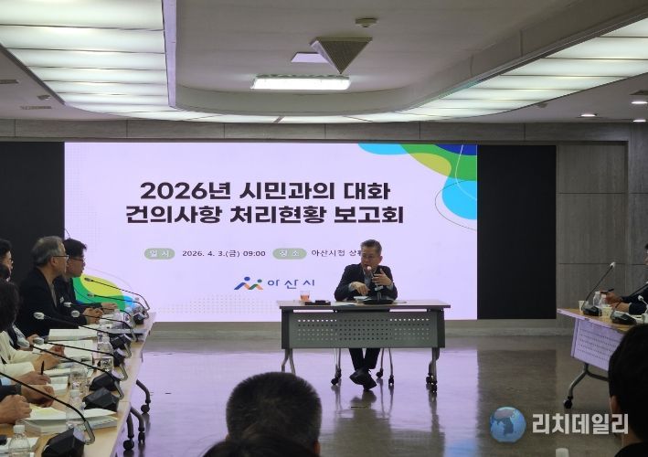 리치데일리 김상현 기자 | 아산시는 지난 3일 부시장 주재로 국·소장, 관련 부서장, 그리고 17개 읍·면·동장이 참석한 가운데 ‘2026년도 시민과의 대화 건의사항 추진상황 보고회’를 가졌다고 밝혔다.
