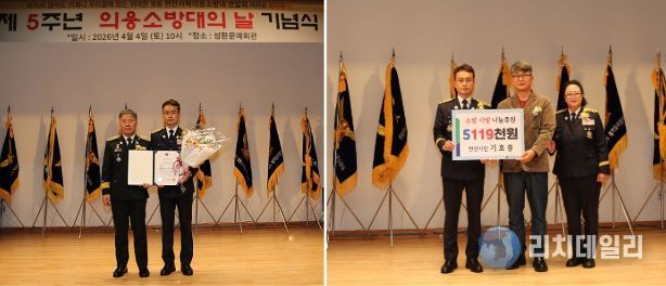 이날 기념식에 앞서 천안시민 기호중씨의 소방나눔 후원 행사도 가졌다. 천안시 서북구 성환읍에 거주하며 어려움에 처한 이웃을 도와 온 기호중씨는, 무보수로 활동하는 의용소방대원들의 이웃 사랑 실천에 감동하여 의용소방대 발전에 쓰라며 5119천원을 후원했다.