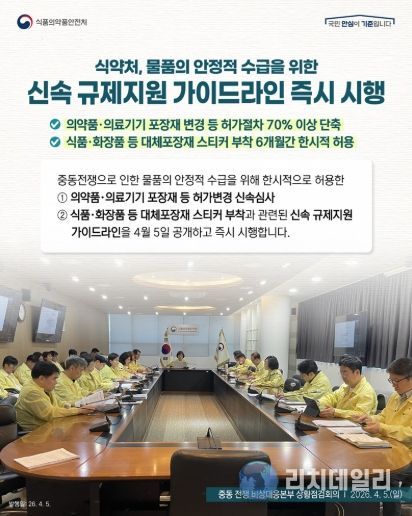 리치데일리 김상현 기자 | 식약처, 물품의 안정적 수급을 위한 신속 규제지원 가이드라인 즉시 시행