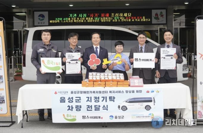 리치데일리 김상현 기자 | 음성군장애인가족지원센터 차량 전달식이 지난 6일 음성군청에서 열린 가운데 ㈜흥국에프엔비, ㈜땅스푸드(땅스부대찌개)는 후원금 총 4000만원을 기탁하며 지역사회 내 소통과 이동지원 강화에 나섰다.