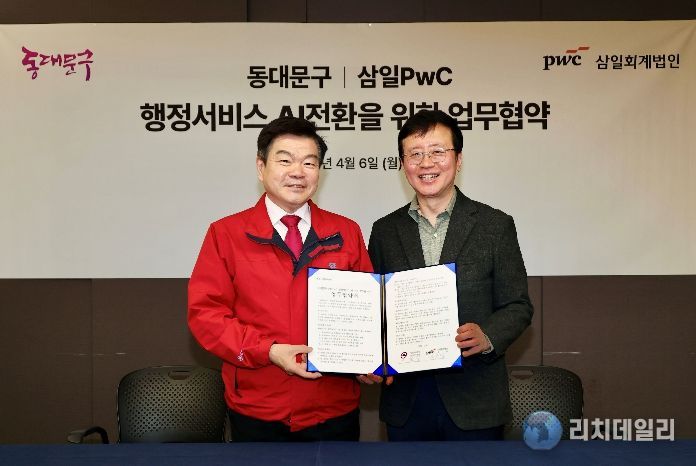 리치데일리 김상현 기자 | 서울 동대문구는 공공 행정서비스의 인공지능 전환, 이른바 AX(Artificial Intelligence Transformation)를 본격 추진하기 위해 삼일PwC와 업무협약을 맺었다. 구는 6일 서울 용산구 삼일PwC TS홀에서 협약식을 열고, 행정서비스 전반에 AI를 어디에, 어떤 방식으로 적용할지 함께 진단하고 자문받는 협력 체계를 마련했다고 밝혔다. 이번 협약은 새 기술을 들여오는 데 그치지 않고, 행정 효율을 높이면서도 구민이 실제로 체감하는 서비스 변화를 만들어내는 데 초점을 맞췄다. 민간의 전문성을 바탕으로 공공행정에 맞는 AX 모델을 짜보겠다는 뜻이다.