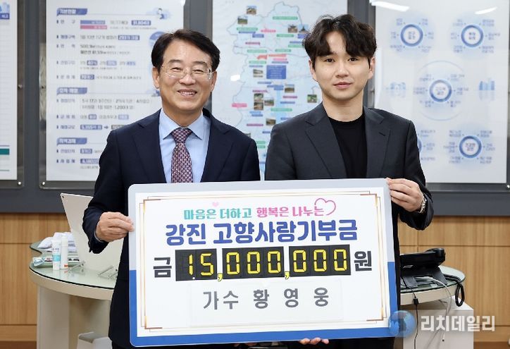 리치데일리 김상현 기자 | 강진군은 가수 황영웅이 강진군을 향한 각별한 애정을 담아 고향사랑기부금 1,500만 원을 기탁하며 지역사회 나눔 실천에 앞장섰다고 7일 밝혔다.