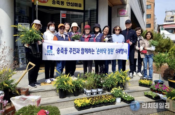 리치데일리 김상현 기자 | 수원시 장안구 송죽동이 지난 3일, 따뜻한 봄을 맞아 관내 ‘손바닥 정원’에서 주민들과 함께하는 ‘2026년 손바닥 정원 식재 행사’를 개최하여 마을 곳곳을 꽃으로 물들였다.