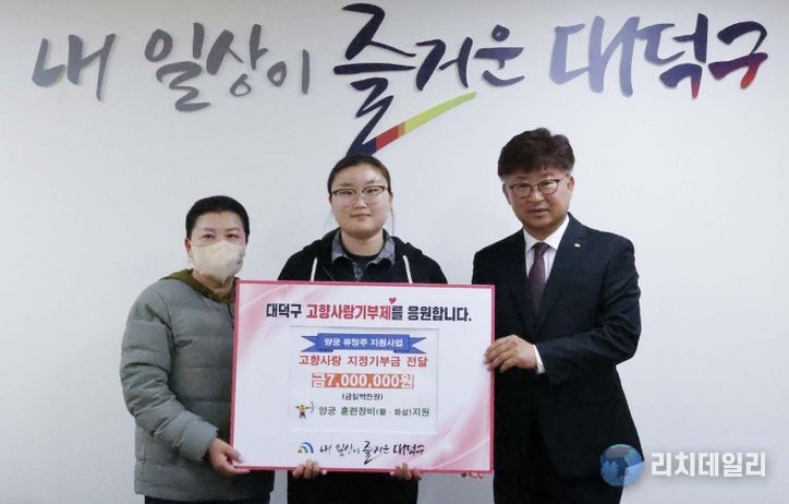 한편 대덕구는 고향사랑기부제를 통해 △대덕형 방문재활 지원 △자립준비청년 운전면허 취득비용 지원 △‘100인의 마음, 청소년 꿈책방 조성’ 등 다양한 사업을 추진하고 있다.