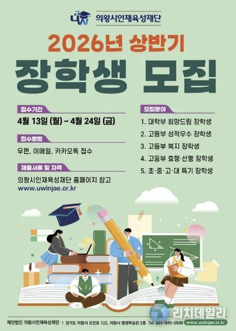 리치데일리 김상현 기자 | 의왕시인재육성재단이 2026년 상반기 장학생을 모집한다.