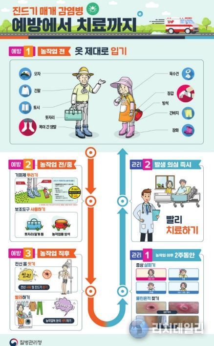 시는 야외활동 후 2주 이내 발열, 구토, 설사 등의 증상이 나타날 경우 단순 감기 증상으로 오인하지 말고 반드시 의료기관을 방문해 성묘, 벌초, 농작업 등 야외활동 이력을 알린 뒤 진료를 받을 것을 강조했다.