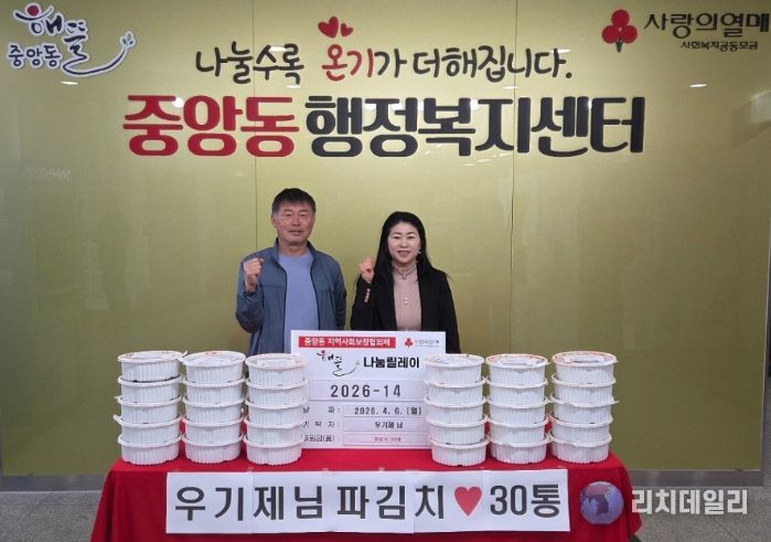리치데일리 김상현 기자 | 오산시 중앙동행정복지센터는 지난 6일 우기제 지역사회보장협의체 전(前) 위원장이 지역 내 어려운 이웃들을 위해 직접 담근 파김치 30통을 기탁했다고 밝혔다.