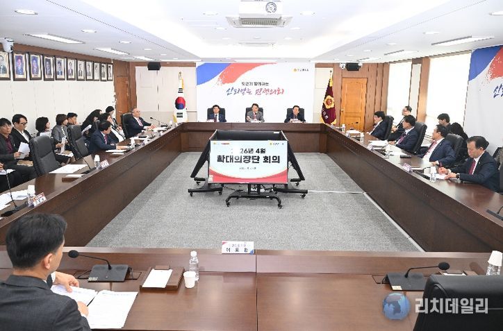 리치데일리 김상현 기자 | 경상남도의회는 4월 7일 도의회 의정회의실에서 최학범 의장을 비롯한 부의장, 상임위원장, 대표의원 등이 참석한 가운데 확대의장단 회의를 개최했다.