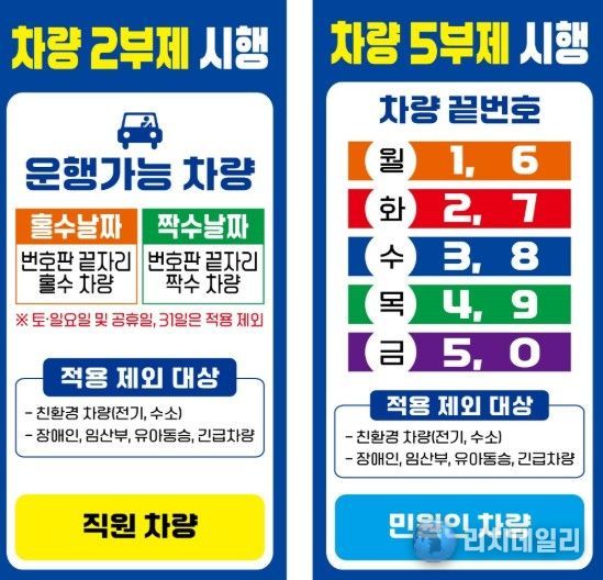 예외적으로 장애인·임산부·유아동승 차량, 전기·수소차, 긴급차량, 대중교통 출퇴근이 어려운 직원 차량 등은 출입할 수 있다.
