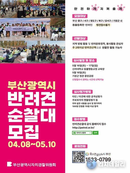 리치데일리 김상현 기자 | 부산광역시자치경찰위원회는 올해 '부산 반려견 순찰대'를 부산 전 자치구로 확대 운영한다고 밝혔다.