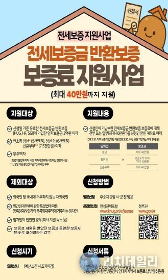 신청인이 이미 납부한 전세보증금반환보증 보증료에 대해 최대 40만원 한도 내에서 지원한다.