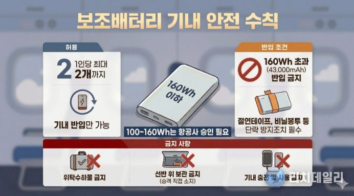 ◆ 보조배터리(Power bank) 반입은 2개까지, 기내 충전·사용은 전면 금지