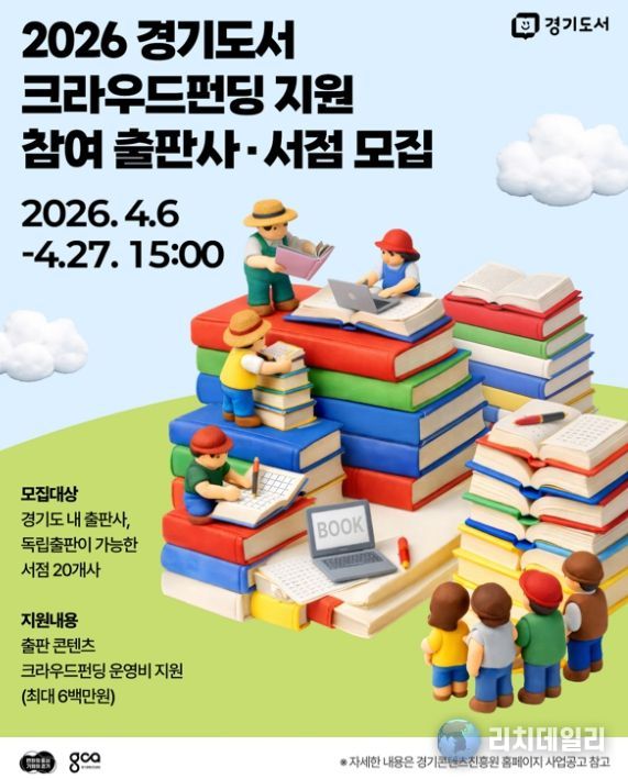 리치데일리 김상현 기자 | 경기도는 도내 출판 생태계 활성화와 유통 다각화를 위해 ‘2026 경기도서 크라우드 펀딩 지원사업’에 참가할 출판사와 서점을 오는 27일까지 모집한다.