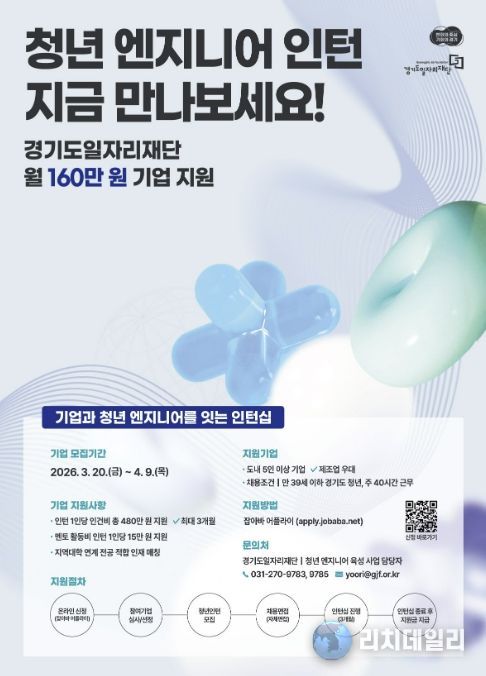 리치데일리 김상현 기자 | 시흥시는 청년 엔지니어 인력 양성과 지역 정착을 지원하기 위한 ‘청년 엔지니어 육성사업-지역청년 채용연계형 인턴십’ 참여기업을 4월 9일까지 모집한다.