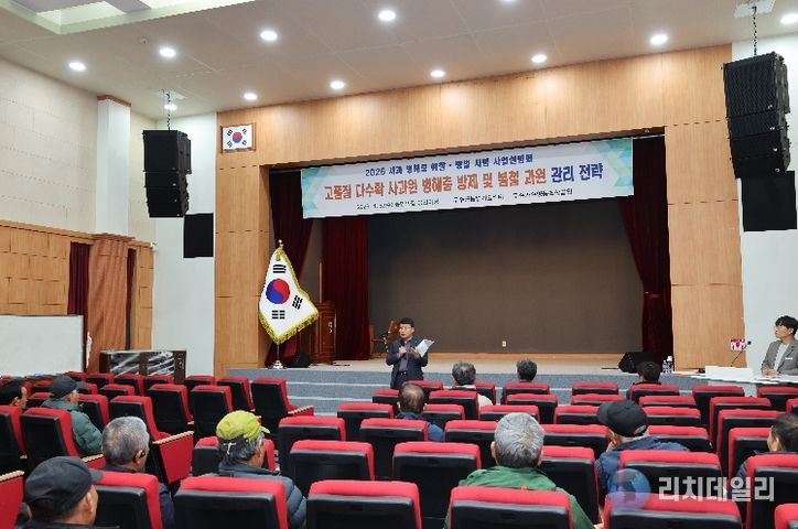 리치데일리 김상현 기자 | 무주군은 지난 8일 농업기술센터 농민의 집에서 “2026년 사과 병해충 예찰·방제 사업 설명회”를 가졌다.