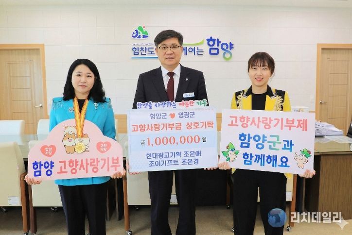 함양군은 8일 군수실에서 현대광고기획 조은애·조이기프트 조은경 씨가 참석한 가운데 고향사랑기부금 100만 원 상호기부 기탁식을 개최했다고 밝혔다.
