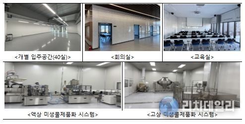 이번에 구축된 ‘농축산용 미생물산업 공유 인프라’는 제품화와 대량생산을 위한 설비를 제공한다. 이를 통해 기술보유 기업들의 본격적인 제품 생산과 상용화가 활발해질 것으로 예상된다. 공유 인프라 내에 개별 입주공간 40실을 마련하고, 입주 기업들이 공동으로 사용할 수 있는 미생물 발효장비, 대용량 혼합기 및 자동포장 설비를 제공하여 미생물 제품의 상용화를 지원한다. 또한 공동 물류보관 창고(상온·냉온)도 마련하여 완제품이 출하되기 전에 안전하게 보관될 수 있도록 했다.