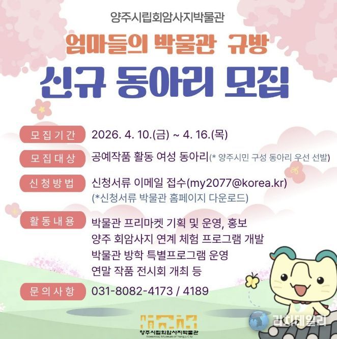 선정된 동아리는 박물관 프리마켓 ‘박물관 토요시장’ 기획 및 운영(체험부스 포함)을 비롯해 회암사지 출토 유물을 활용한 체험 프로그램, 문화상품 개발, 방학 특별 프로그램 운영, 연말 작품 전시회 개최 등에 참여한다.