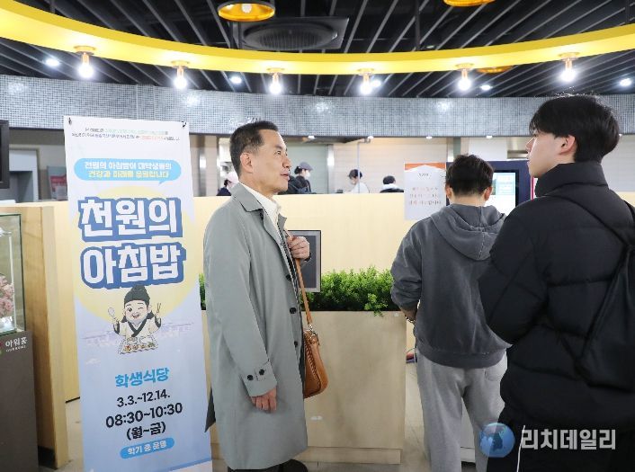 김진태 지사는 이날 대학 아침밥 식단 구성과 학생 만족도 등을 직접 확인하고, ‘천원의 아침밥’ 사업 홍보 현황도 함께 점검했다.