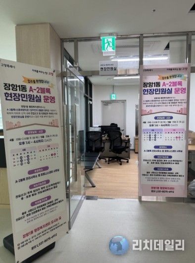 리치데일리 김상현 기자 | 고양특례시 장항1동은 고양장항 공공주택지구 A-2블록 아파트 단지 내 ‘현장민원실’을 오는 14일부터 운영한다.