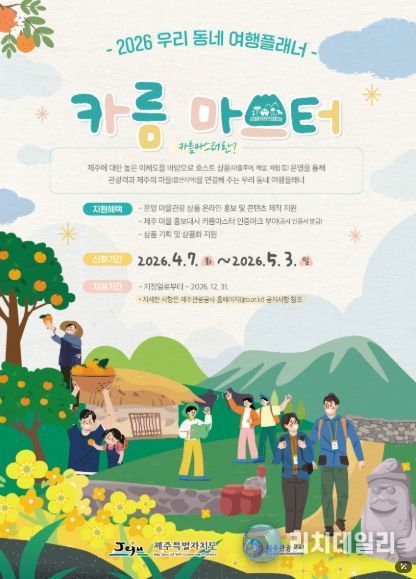 리치데일리 김상현 기자 | 제주특별자치도와 제주관광공사(사장 고승철)는 오는 5월 3일까지 온라인 채널을 통해 제주 마을 관광을 기획ㆍ운영할 ‘카름마스터’를 모집하고 있다고 9일 밝혔다.
