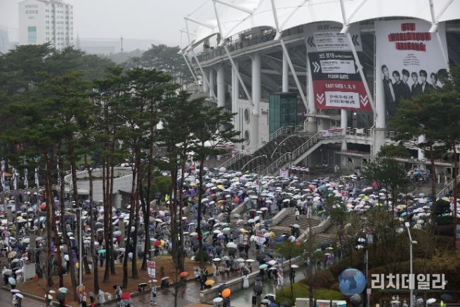 리치데일리 김상현 기자 | ‘BTS 월드투어 아리랑 in 고양’이 열리는 고양종합운동장, 9일 비가 내리는 궂은 날씨에도 공연장과 인근 상가까지 BTS 콘서트를 즐기기 위해 방문한 국내외 관람객으로 가득찼다.