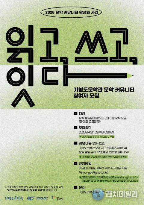 참여를 원하는 시민은 6월 30일까지 최소 3회 이상의 정기 모임 계획서 등 신청 서류를 작성해 기형도문학관 공식 이메일로 제출하면 된다. 참여 신청이 많은 경우 조기 마감한다.