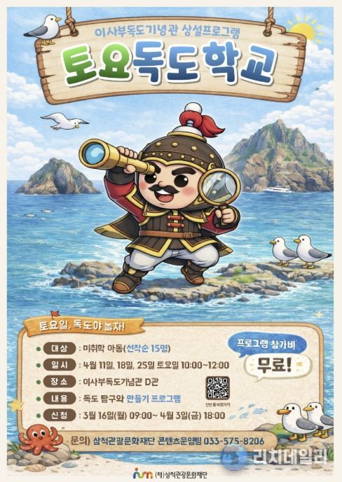 리치데일리 김상현 기자 | 삼척관광문화재단은 지역 청소년이 직접 제작한 교육 콘텐츠를 지역 아동 교육에 활용하는 ‘이사부 콘텐츠 선순환 모델’을 구축하고, ‘수요독도학교’와 ‘토요독도학교’를 연계 운영한다고 밝혔다.
